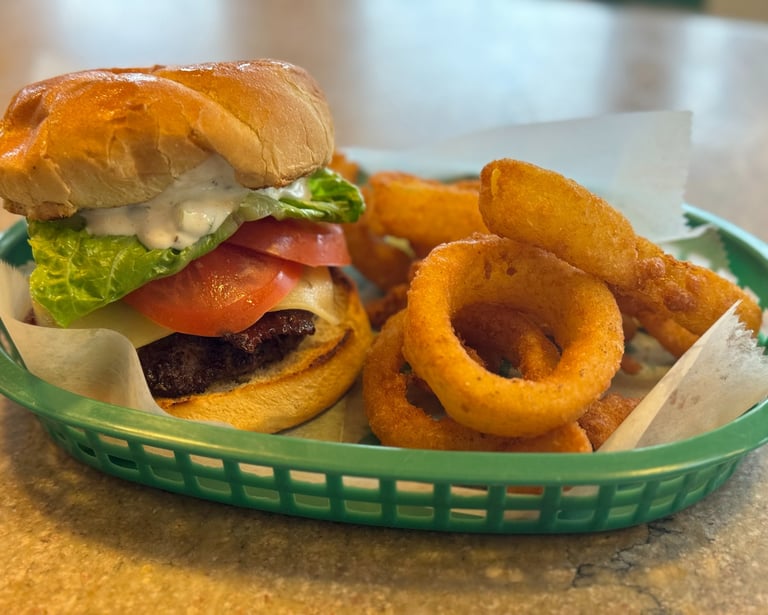 Replace fries/chips with onion rings +$1.00